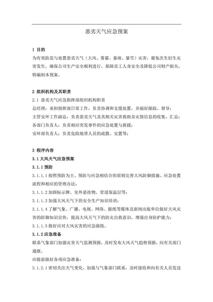 惡劣天氣(大風(fēng)、霧霾、暴雨)應(yīng)急預(yù)案doc