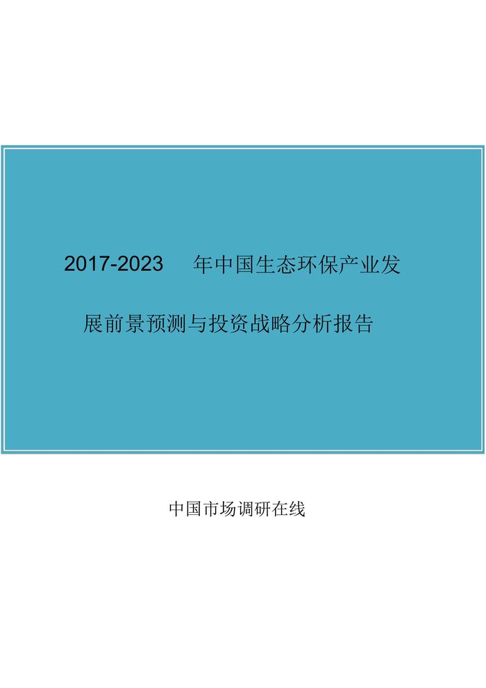 2017-2023年中國(guó)生態(tài)環(huán)保產(chǎn)業(yè)發(fā)展前景預(yù)測(cè)與戰(zhàn)略投資分析報(bào)告docx