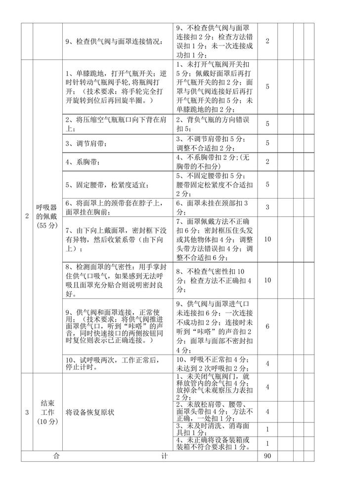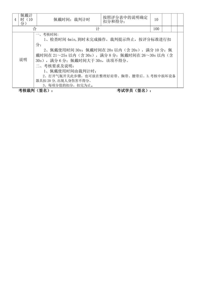 空氣呼吸器佩戴評分表doc