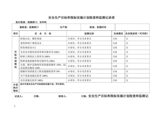 安全生產(chǎn)目標(biāo)指標(biāo)實(shí)施計(jì)劃?rùn)z查監(jiān)測(cè)記錄(16頁(yè))doc