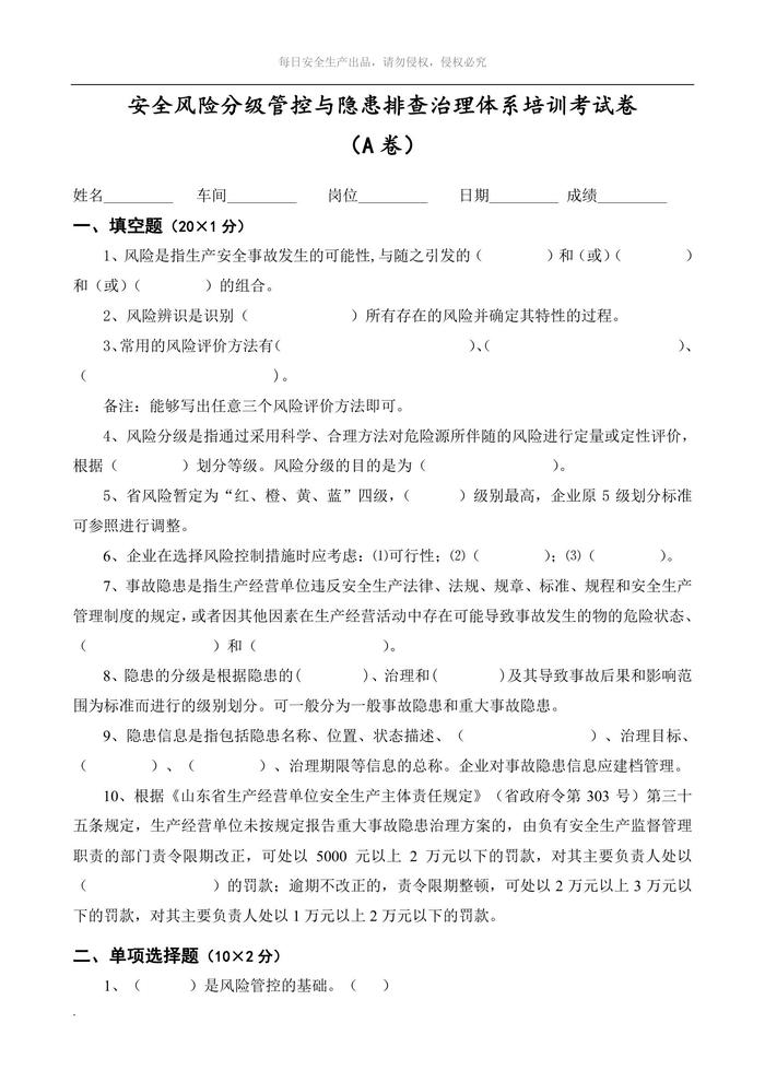 培訓(xùn)考試卷ABCD四套與答案doc