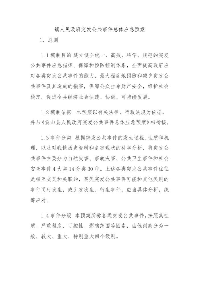 鎮(zhèn)人民政府突發(fā)公共事件總體應(yīng)急預(yù)案(1)doc