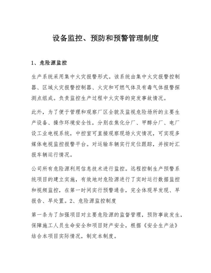 XX公司設備監(jiān)控、預防和預警管理制度(9頁)docx