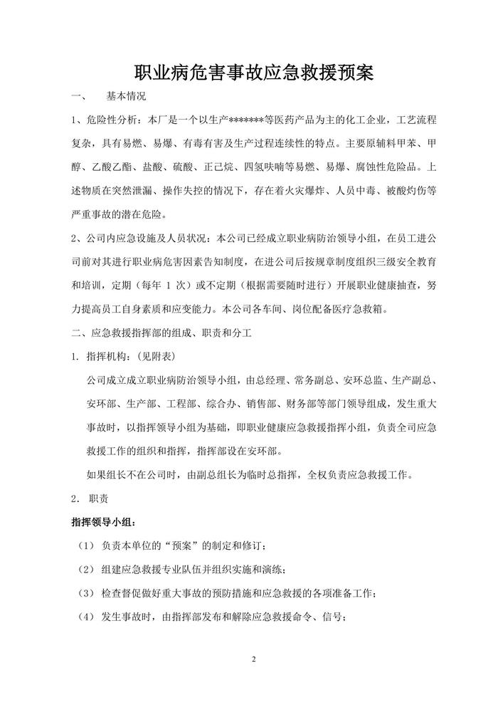 職業(yè)病危害事故應(yīng)急救援預(yù)案doc