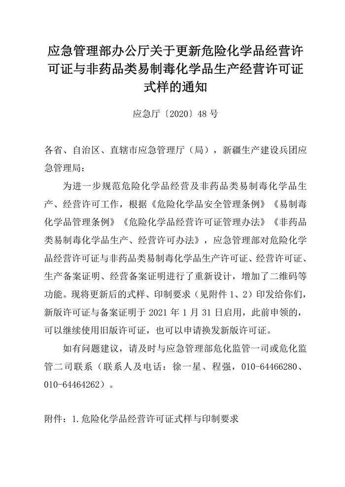 布《關(guān)于更新危險(xiǎn)化學(xué)品經(jīng)營(yíng)許可證與非藥品類易制毒化學(xué)品生產(chǎn)經(jīng)營(yíng)許可證式樣的通知》(1)docx