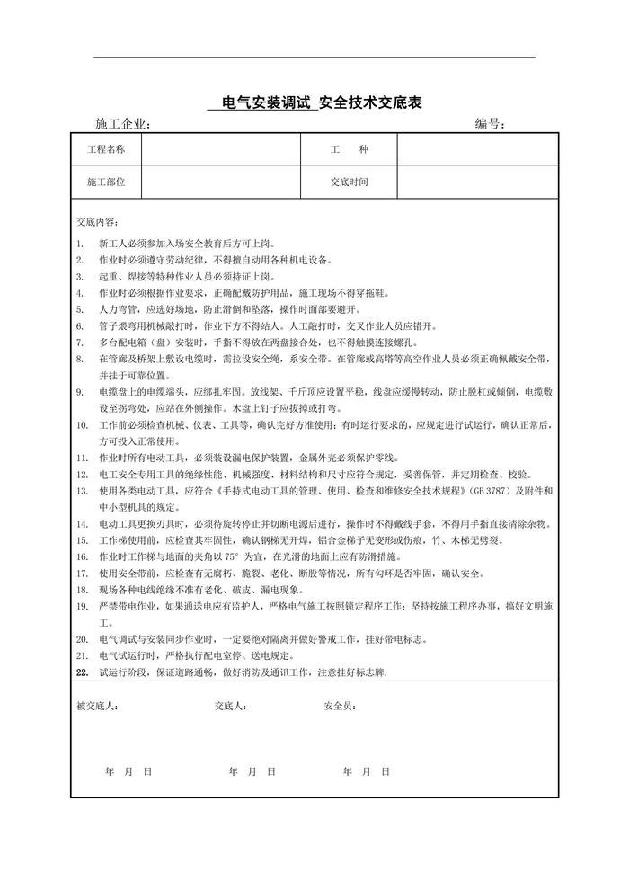 ~電氣安裝調(diào)試安全交底doc