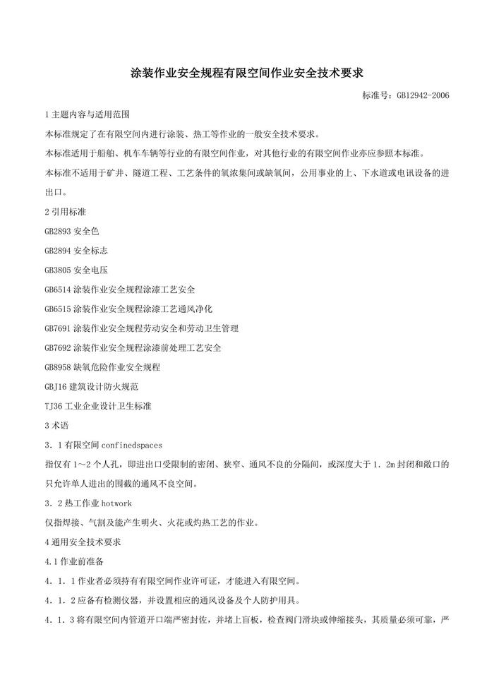 006涂裝作業(yè)安全規(guī)程有限空間作業(yè)安全技術(shù)要求(1)(1)docx