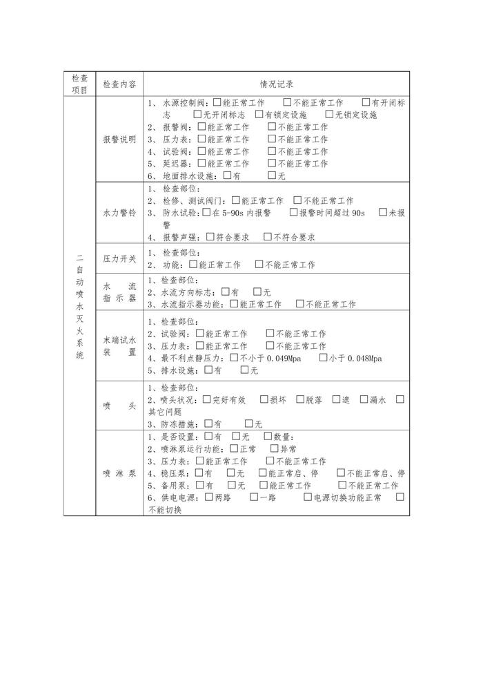 消防設(shè)備設(shè)施日常檢查表格(16頁)doc