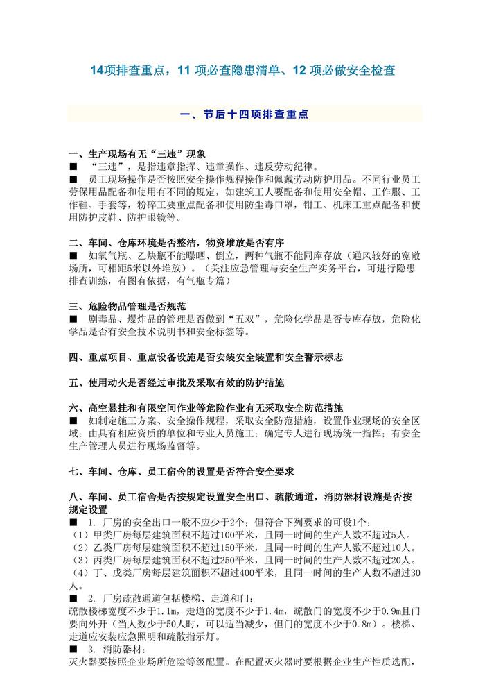 B2021070614項排查重點,11 項必查隱患清單,12 項必做安全檢查docx B2021070614項排查重點,11 項必查隱患清單,12 項必做安全檢查docx