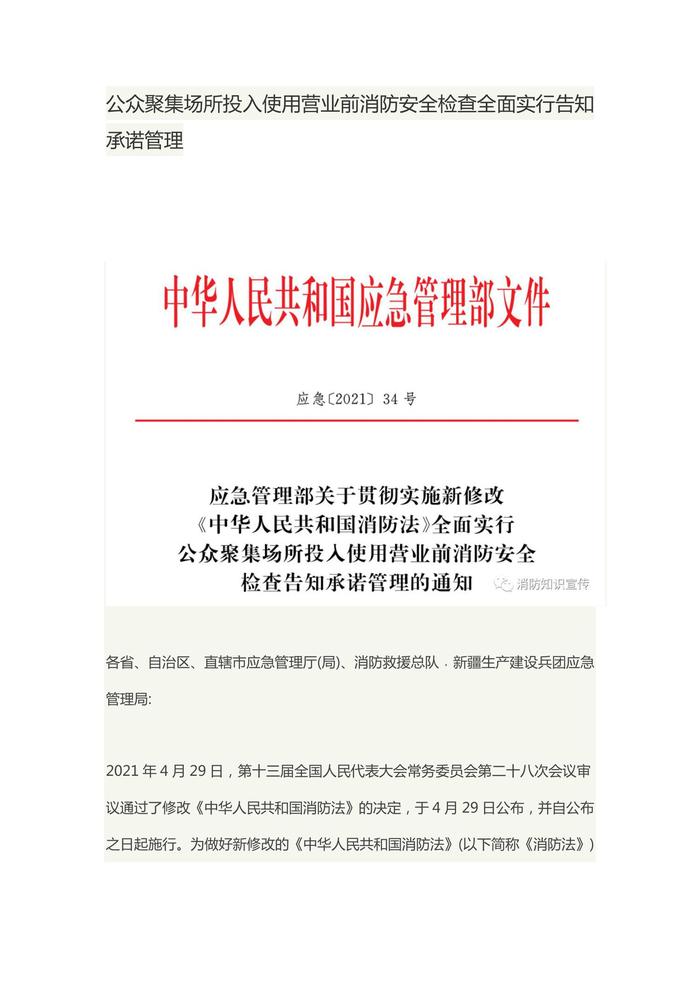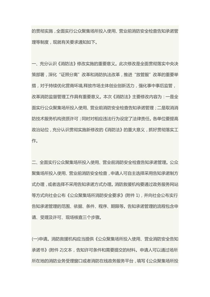 公眾聚集場所投入使用營業(yè)前消防安全檢查全面實行告知承諾管理docx