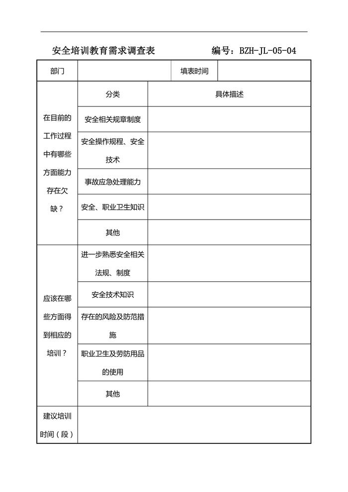 安全培訓(xùn)教育需求調(diào)查表doc