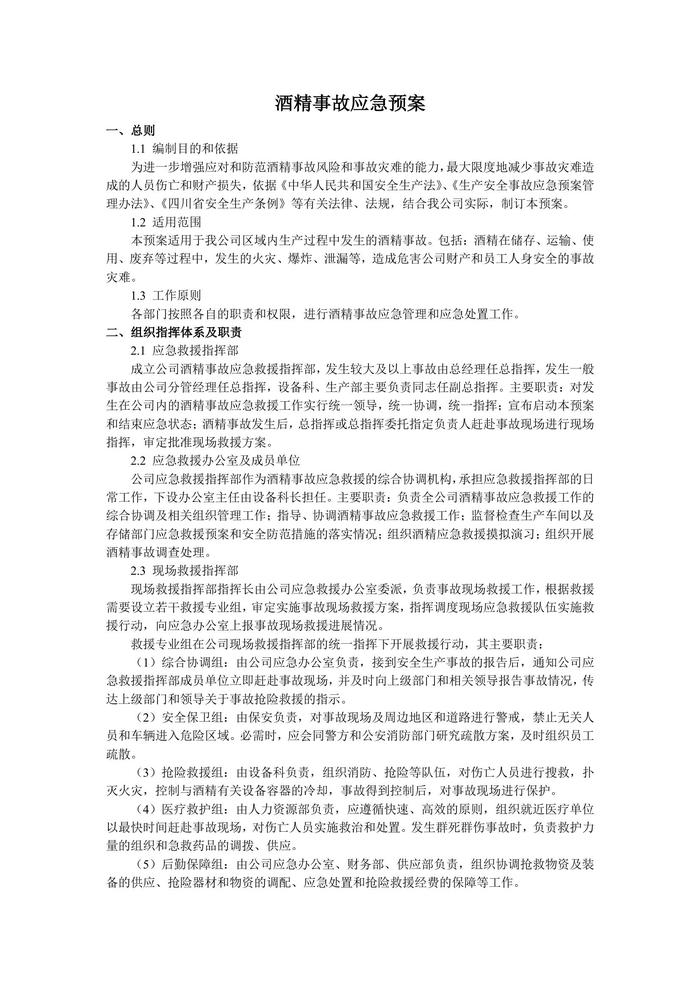 酒精事故應(yīng)急預(yù)案doc