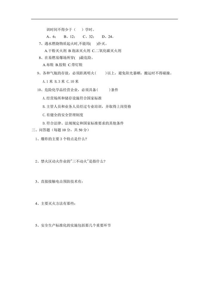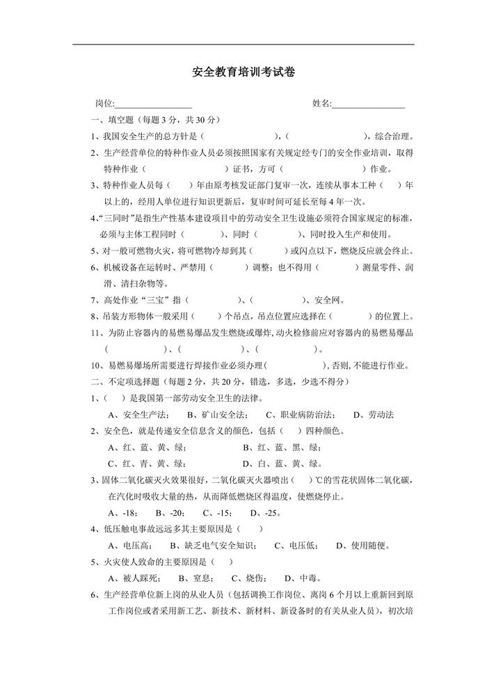 安全教育培訓(xùn)考試卷doc