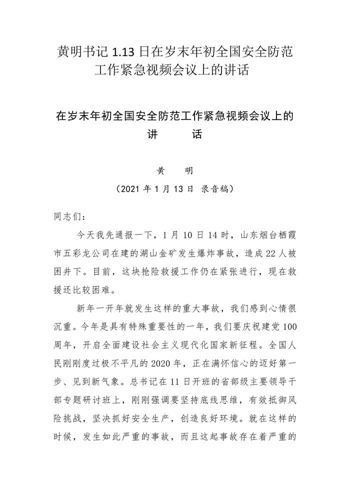 黃明書記113日在歲末年初全國安全防范工作緊急視頻會議上的講話(錄音稿)(1)docx