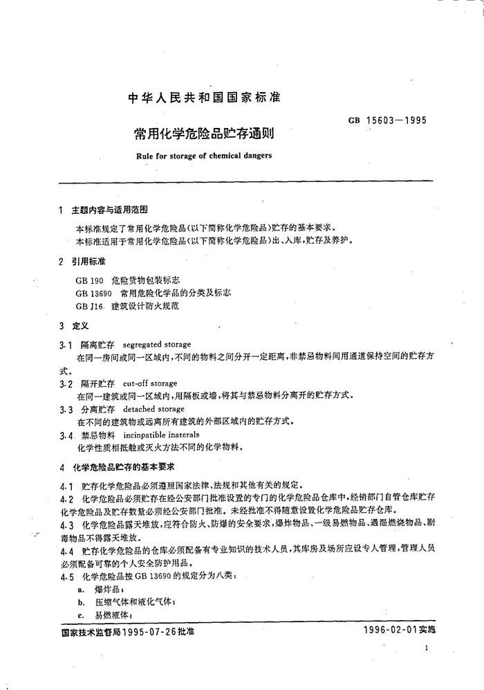 GB 15603-1995 常用化學(xué)危險(xiǎn)品貯存通則pdf