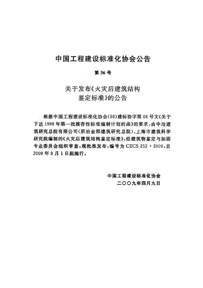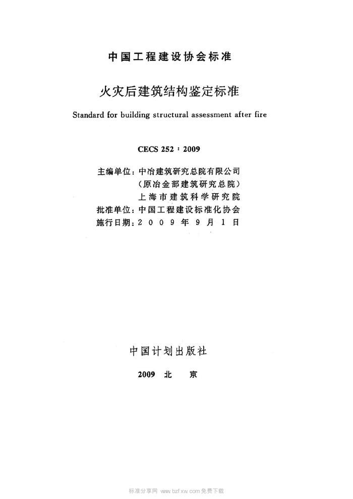 CECS 252-2009 火災(zāi)后建筑結(jié)構(gòu)鑒定標(biāo)準(zhǔn)pdf