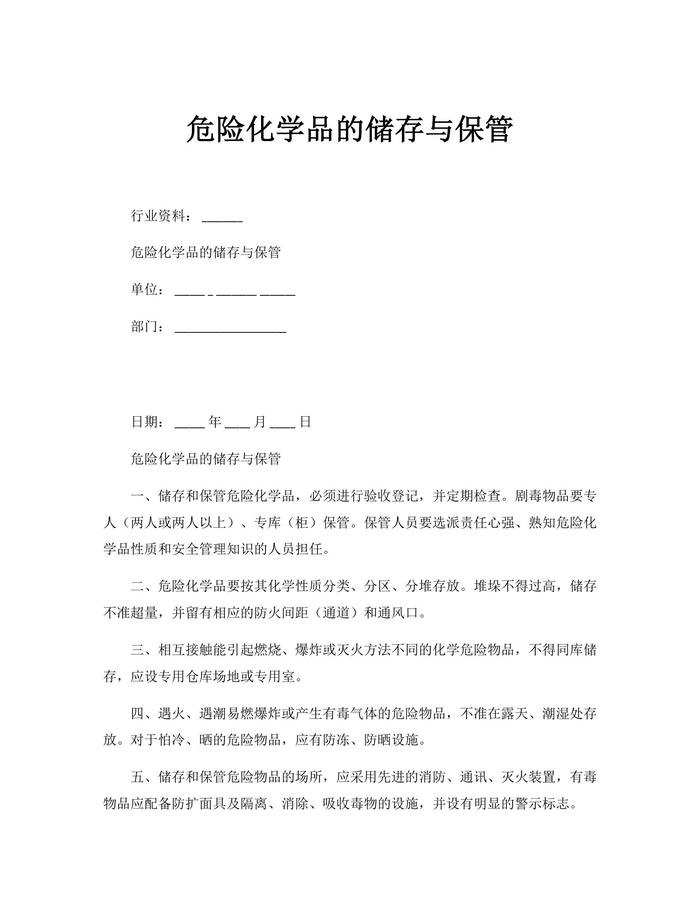 危險(xiǎn)化學(xué)品的儲(chǔ)存與保管docx