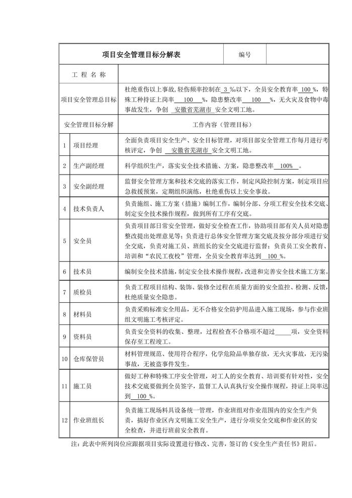 項(xiàng)目部安全生產(chǎn)責(zé)任制及考核表doc