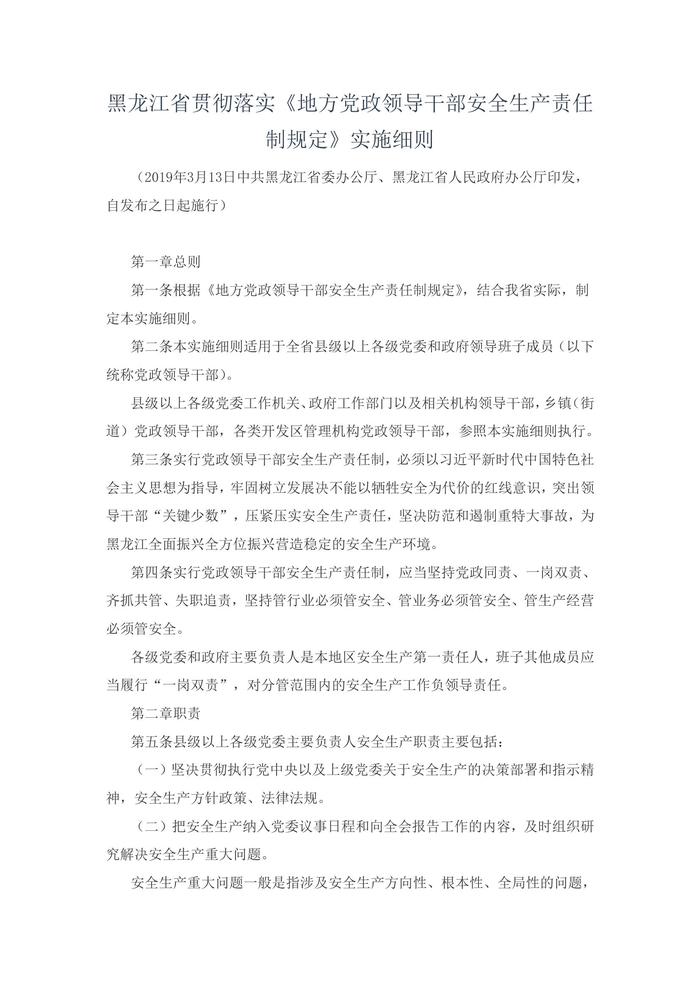 黑龍江省貫徹落實《地方黨政領導干部安全生產責任制規(guī)定》實施細則doc