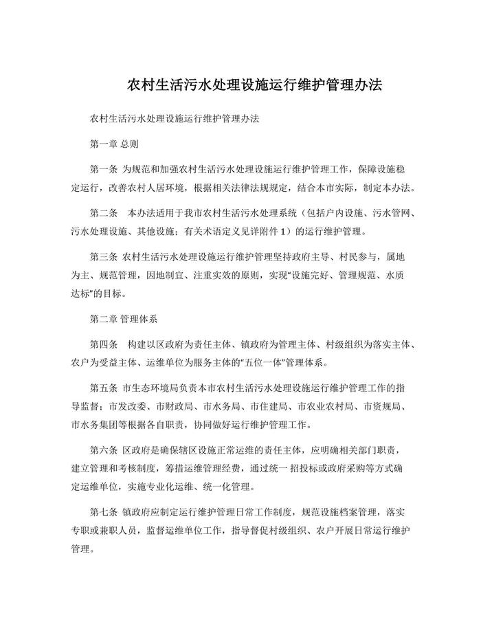 農(nóng)村生活污水處理設(shè)施運(yùn)行維護(hù)管理辦法docx
