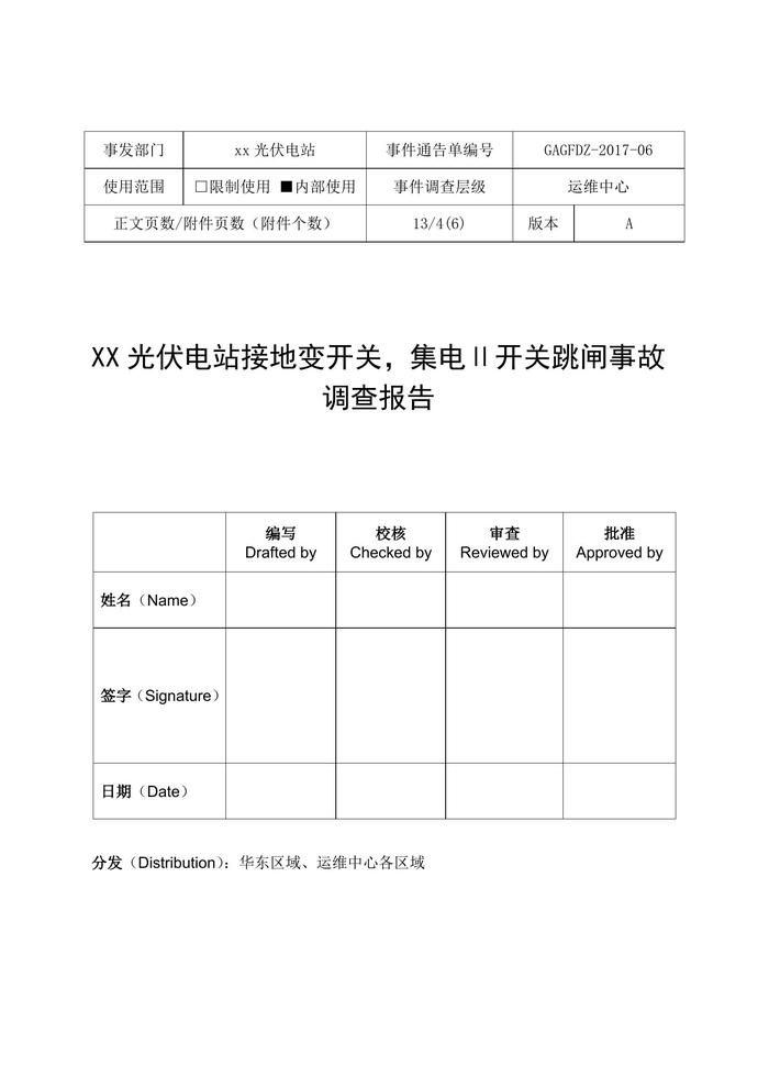光伏電站接地開(kāi)關(guān)跳閘事故調(diào)查報(bào)告(專(zhuān)業(yè)版)docx