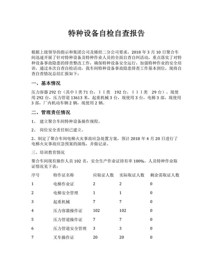特種設備自檢自查報告docx