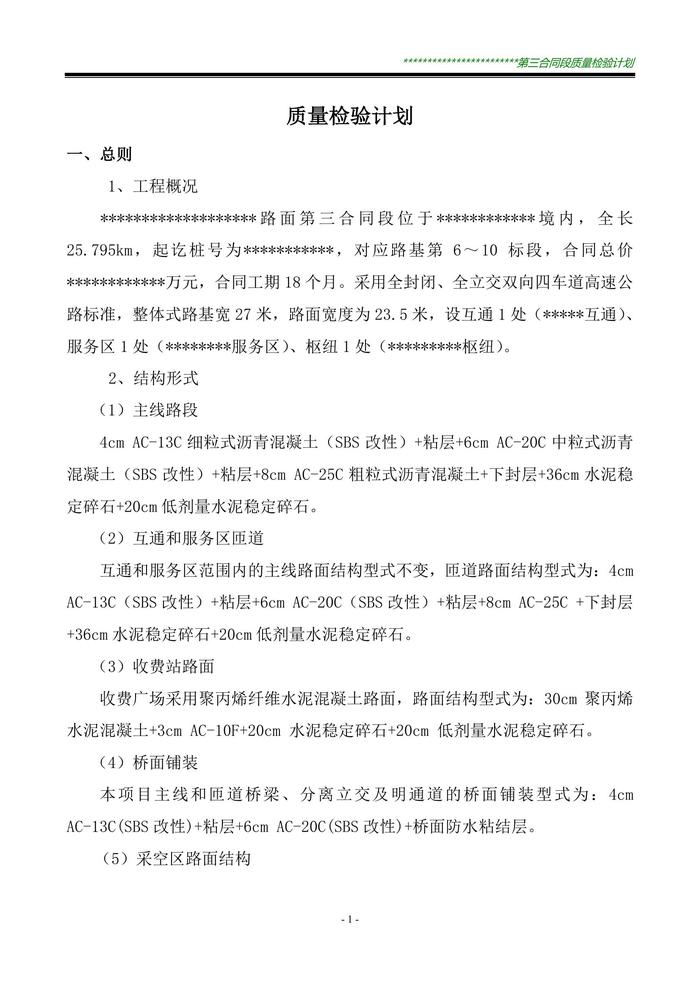 高速公路項(xiàng)目獎(jiǎng)質(zhì)量檢驗(yàn)計(jì)劃doc
