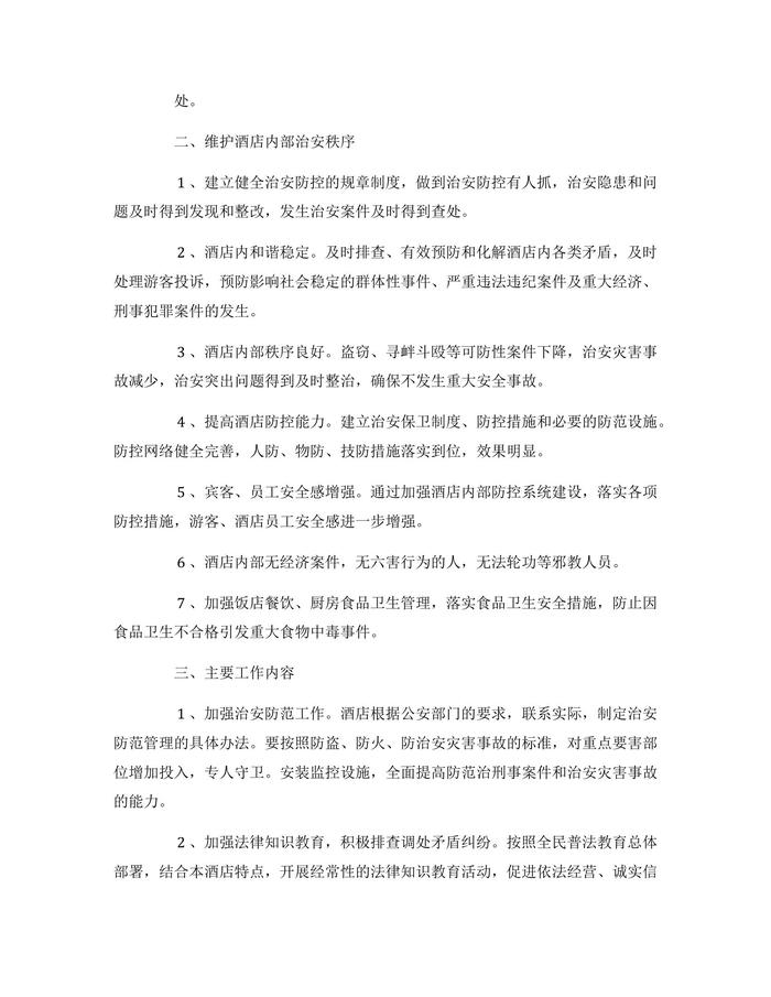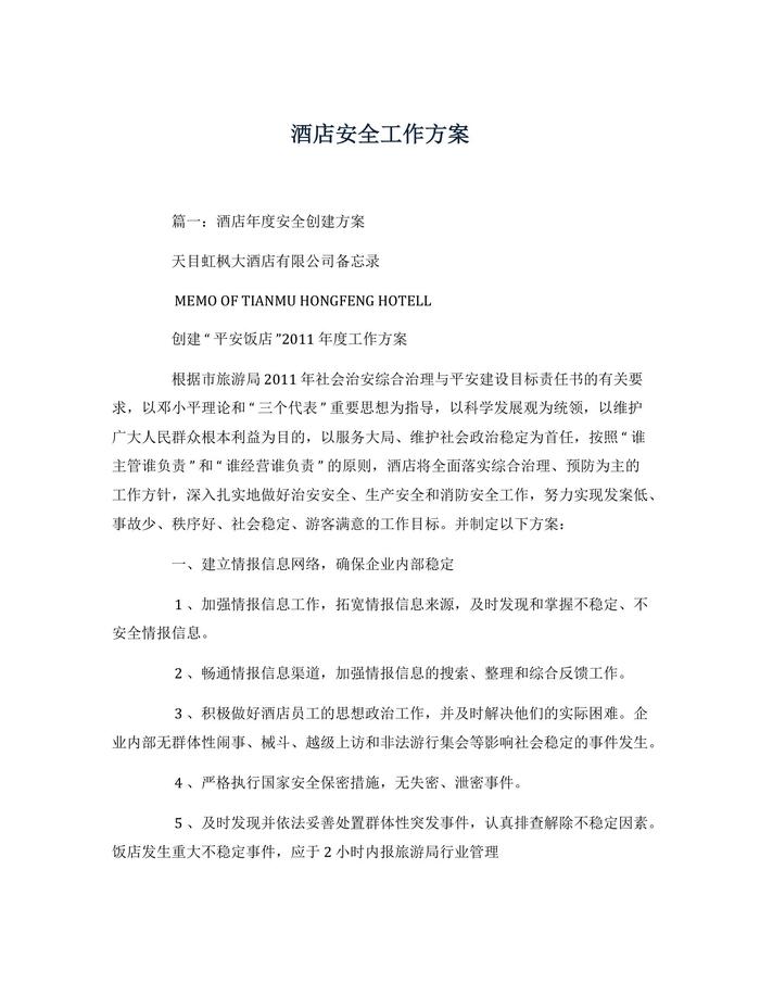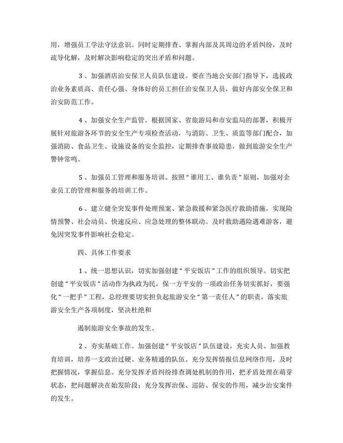 酒店安全工作方案docx