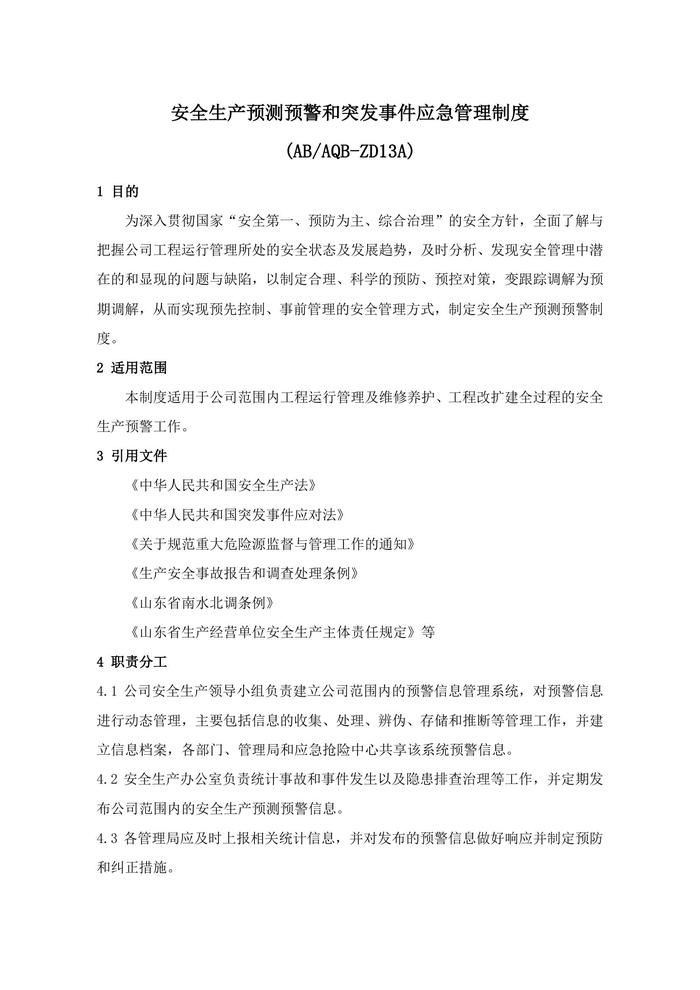 XX公司安全預(yù)警和突發(fā)事件管理制度(7頁)doc