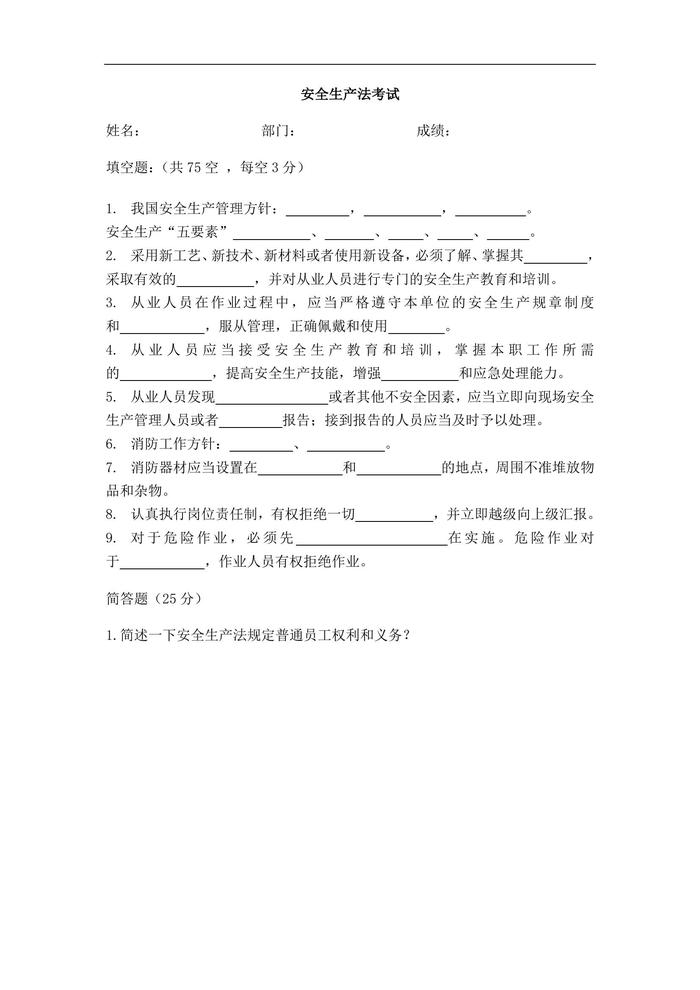 安全生產(chǎn)法考試doc