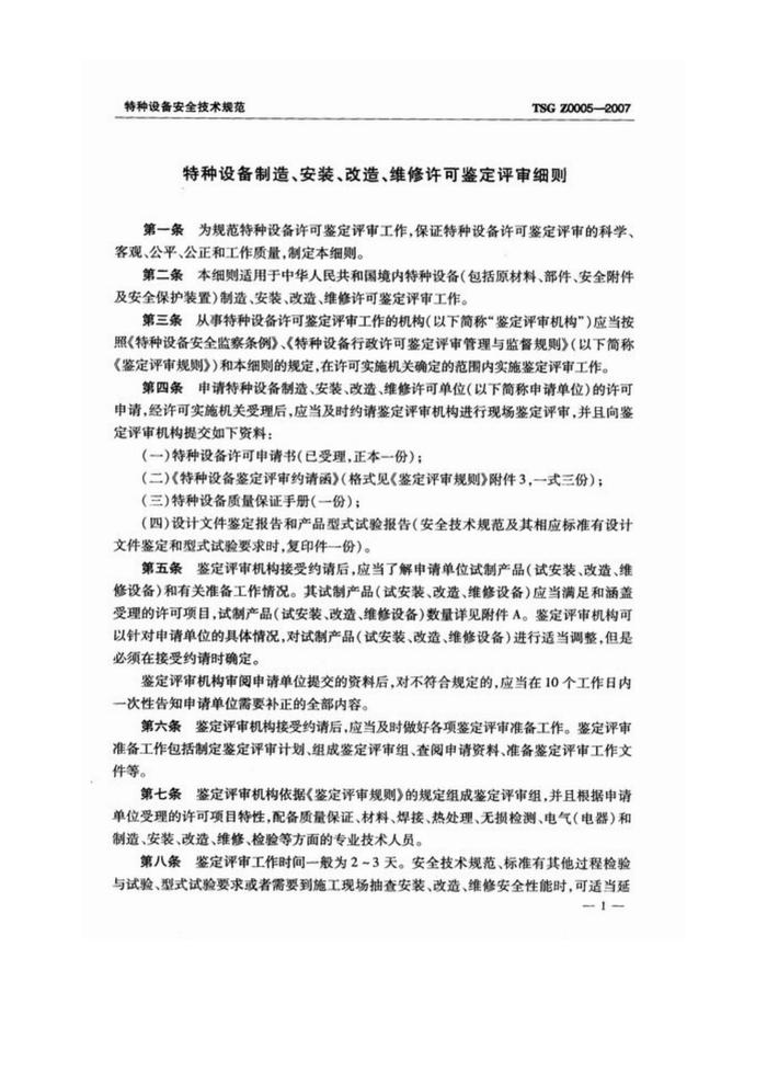 G20210715 TSG Z0005 2007 特種設(shè)備制造、安裝、改造、維修許可鑒定評審細(xì)則pdf