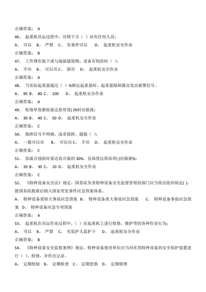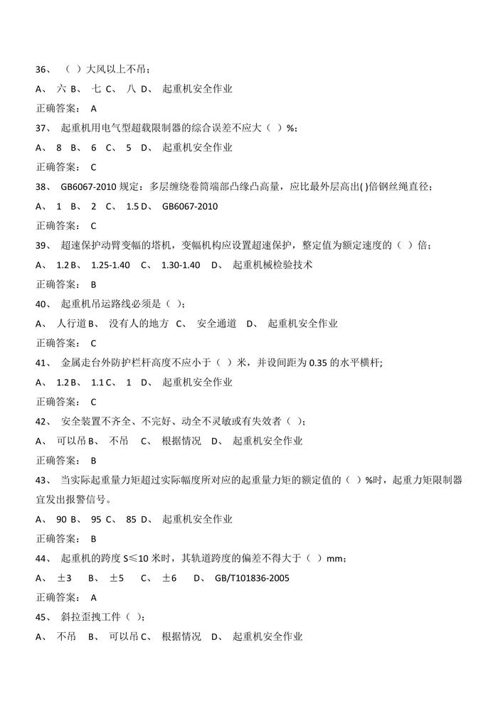 N2020090710套起重機械安全管理試卷判斷題選擇題含答案docx