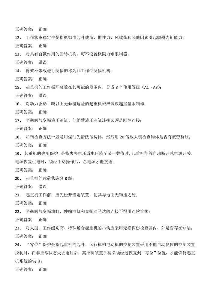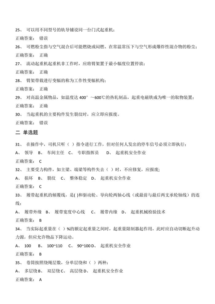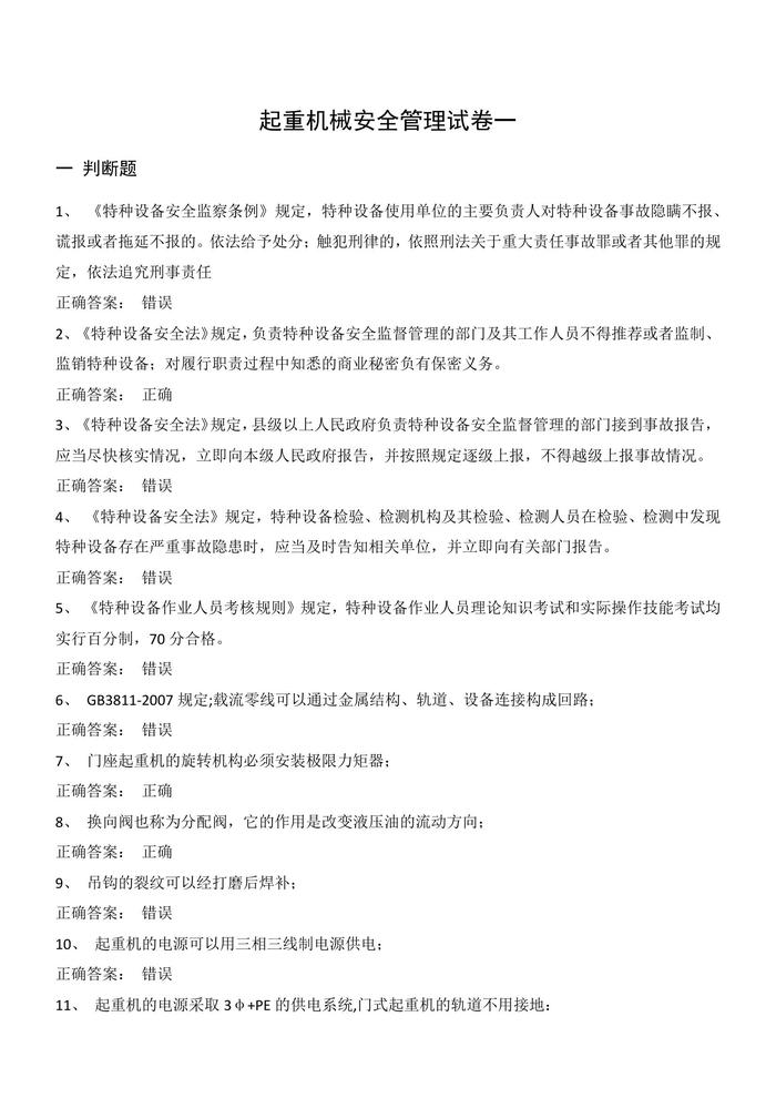N20200907之10套起重機械安全管理試卷判斷題選擇題含答案docx