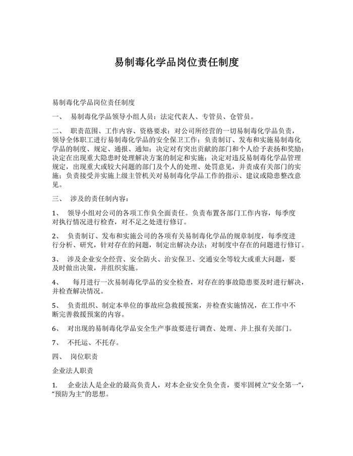 易制毒化學(xué)品崗位責(zé)任制度docx