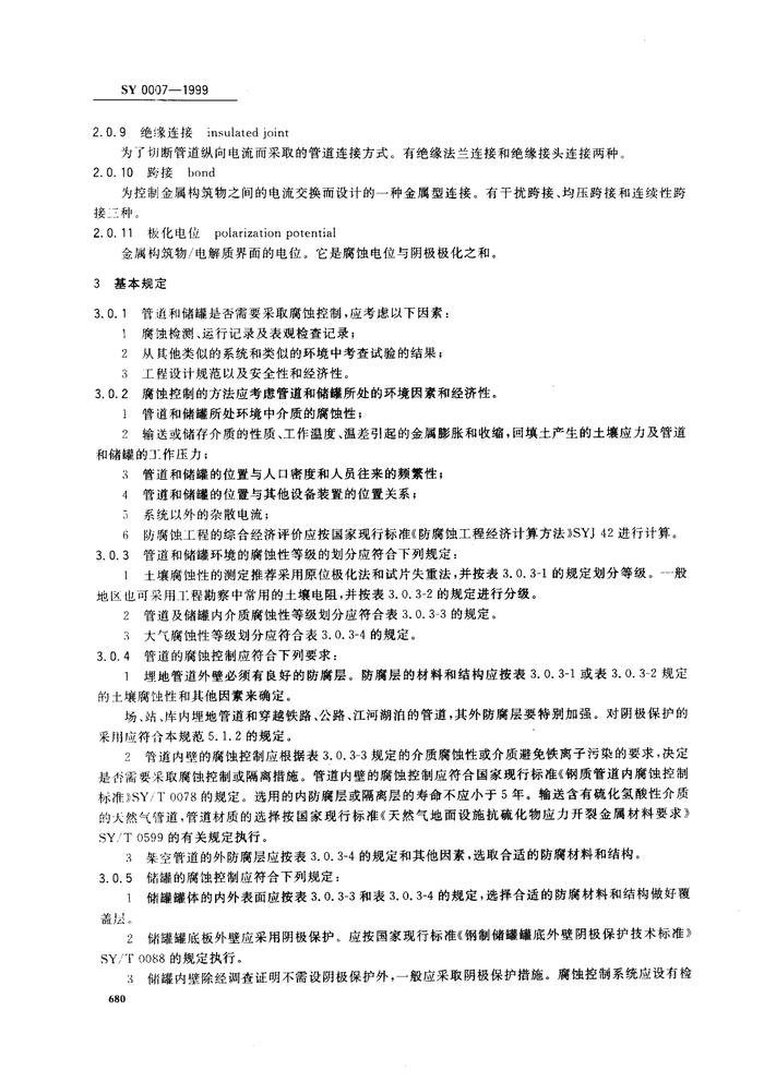 SY 0007-1999; 鋼質(zhì)管道及儲罐腐蝕控制工程設(shè)計(jì)規(guī)范pdf