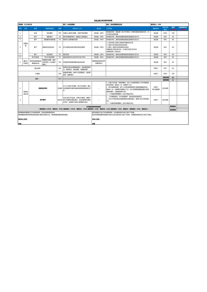 【績(jī)效考核】安全主管崗位KPI績(jī)效考核表(樣表)(1)xlsx