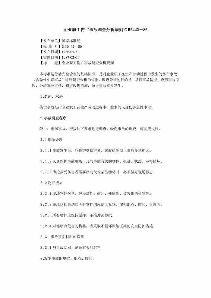 gb6442-1986企業(yè)職工傷亡事故調(diào)查分析規(guī)則pdf