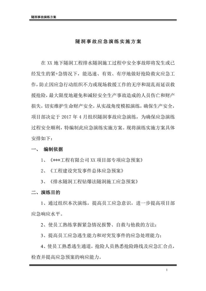 隧洞事故應(yīng)急演練實(shí)施方案(38頁(yè))(1)doc