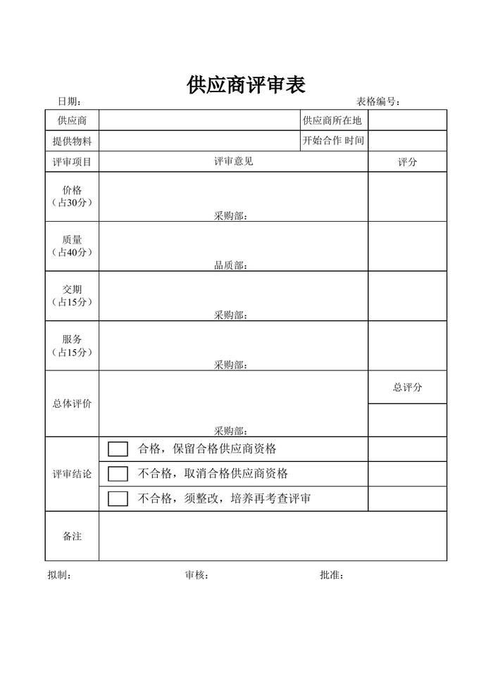 供應(yīng)商業(yè)績(jī)?cè)u(píng)定表(1)xls