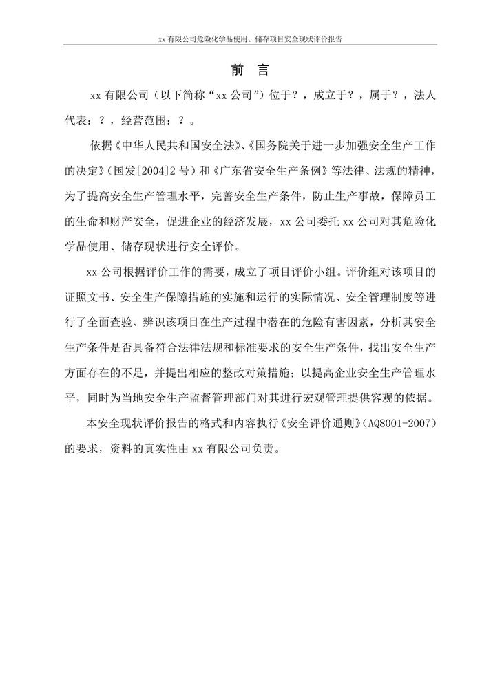 危險(xiǎn)化學(xué)品使用、儲(chǔ)存項(xiàng)目安全現(xiàn)狀評(píng)價(jià)報(bào)告doc 危險(xiǎn)化學(xué)品使用、儲(chǔ)存項(xiàng)目安全現(xiàn)狀評(píng)價(jià)報(bào)告doc