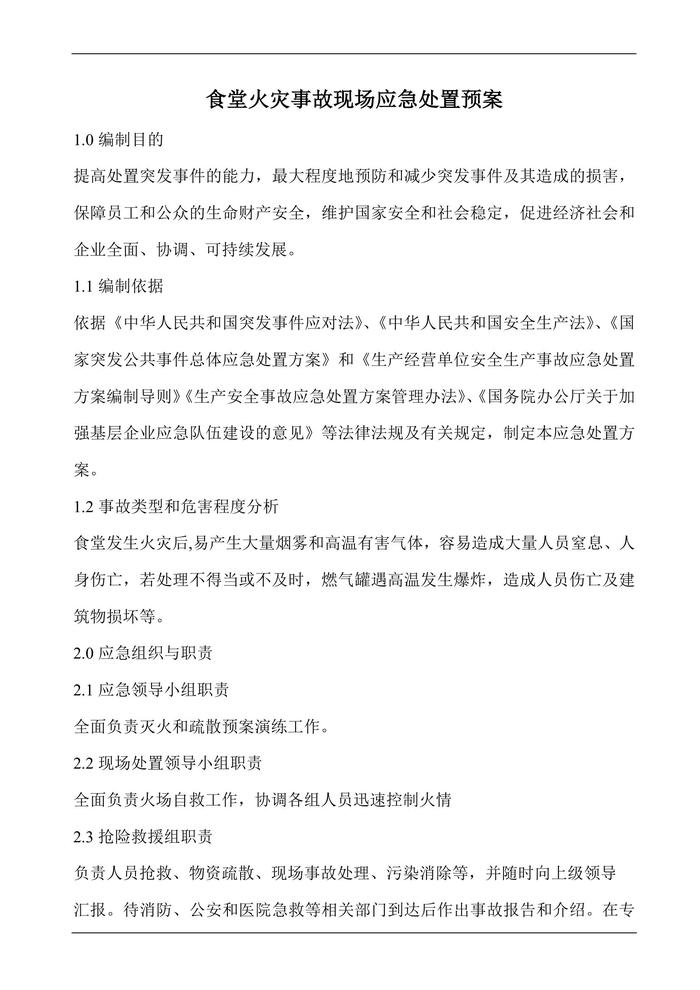 食堂火災事故現(xiàn)場應急處置預案doc