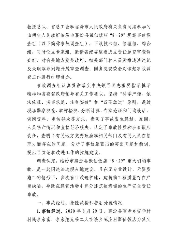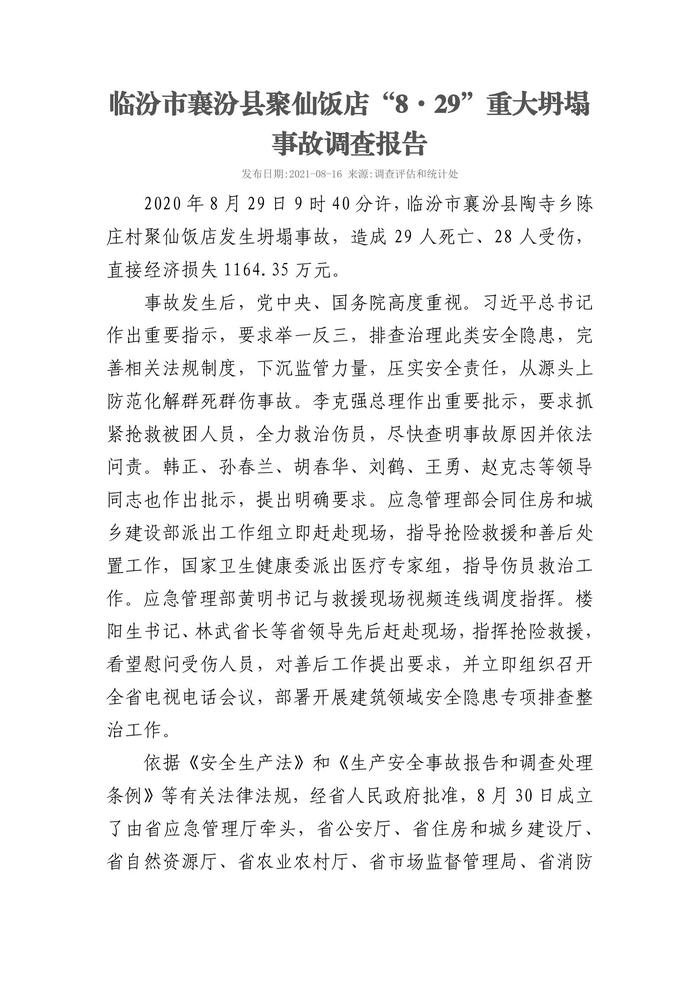 臨汾市襄汾縣聚仙飯店“8·29”重大坍塌事故調(diào)查報(bào)告pdf