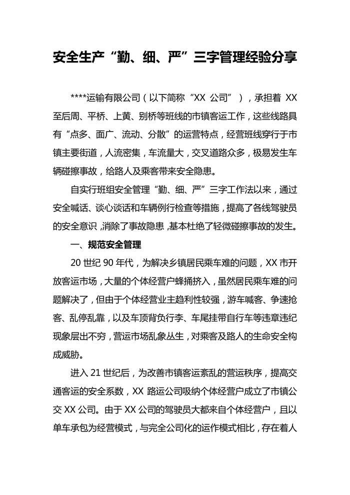 安全生產“勤、細、嚴”三字管理經驗分享docx 安全生產“勤、細、嚴”三字管理經驗分享docx