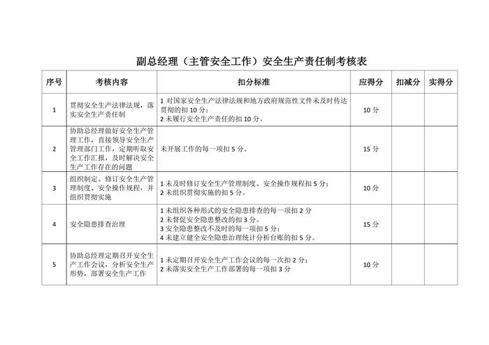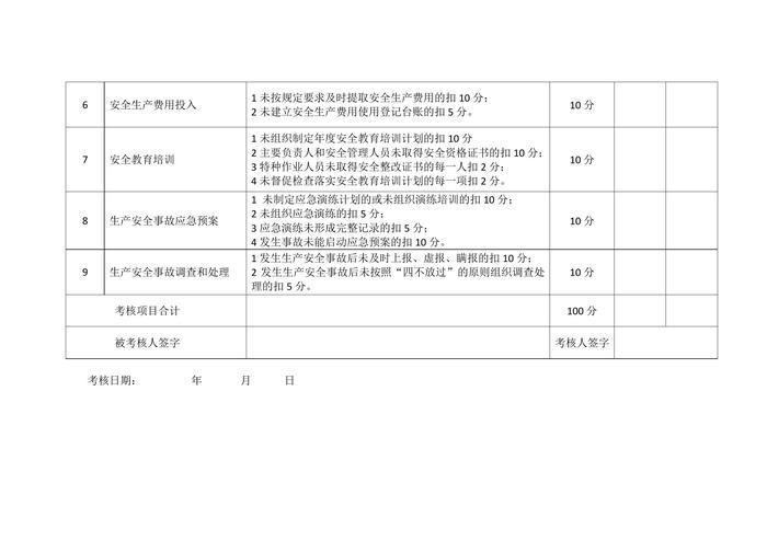 安全生產(chǎn)責(zé)任制考核表1docx