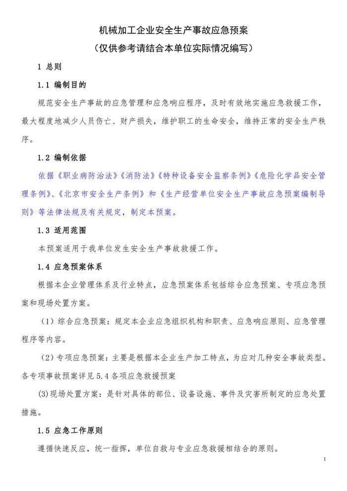 F20210730之機械加工企業(yè)安全生產(chǎn)事故應急預案doc