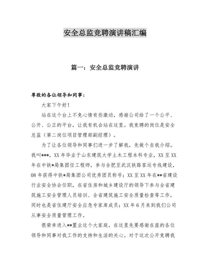 安全總監(jiān)競(jìng)聘演講稿匯編(17頁)docx