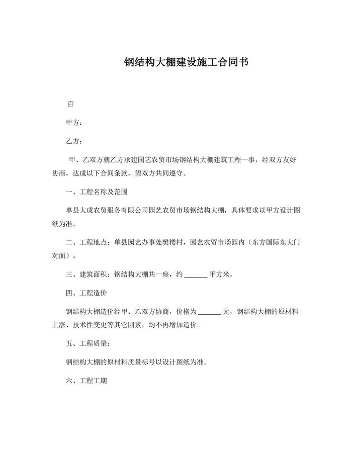 鋼結(jié)構(gòu)大棚建設(shè)施工合同書docx