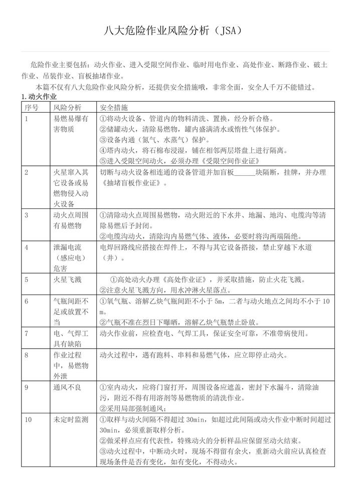 八大危險作業(yè)風險分析docx
