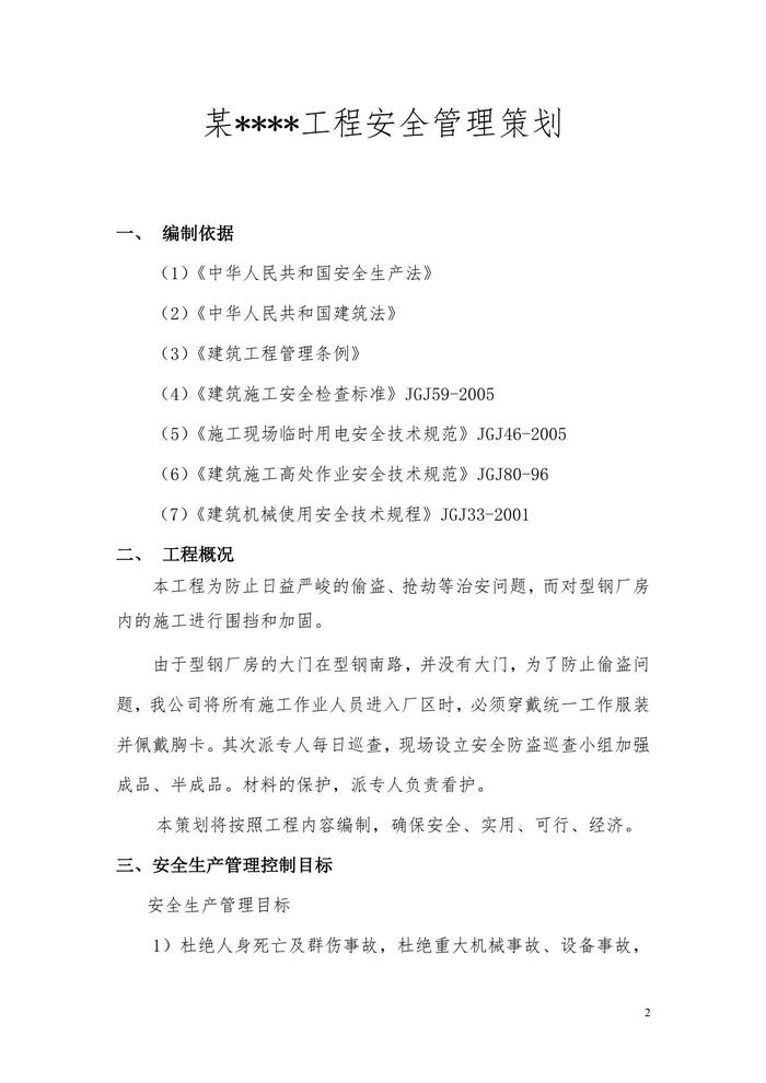 某工程項目安全管理策劃書(14頁)doc