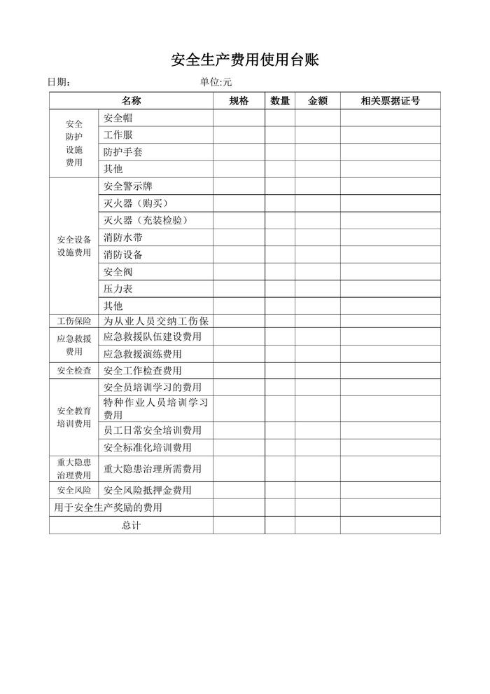 全生產(chǎn)費(fèi)用使用臺(tái)賬表(1)doc
